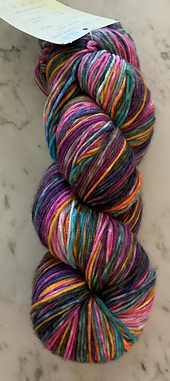 A multicolor self striping yarn perfect for shawls and other accessories with a long color repeat.