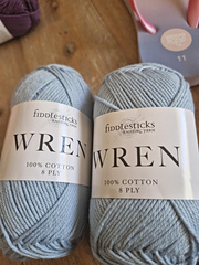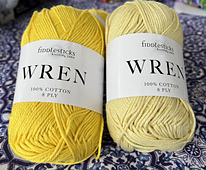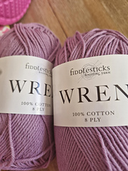 Fiddlesticks Wren 8 Ply is 100% Cotton. Soft, cool and comfortable to wear, Wren is perfect for summer knits and crochet.