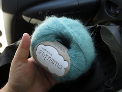 A heavy lace/3 ply weight yarn. This super soft yarn has a glistening silk core with a gentle halo of supersoft alpaca like soft pillowy clouds hence the name Cumulus.