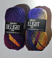 DROPS Delight is a sock yarn that is also very suitable for garments, worked on a different gauge. For socks the standard gauge in DROPS patterns is 26 sts per 4” and for garments the standard gauge is 23 sts per 4”