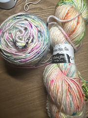 100g hand-dyed single ply 100% merino yarn. Lustrous, soft, delicate and bouncy.