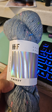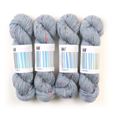 Tweed DK yarn and the coloured bits are our own hand-dyed waste - the ties that we take off the hand dyed skeins. We save them very diligently and it’s a total labour of love!