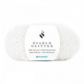 When knit together with another yarn, like a wool or wool blends Diablo Glitter adds a little sparkle without becoming overpowering. It will make the overall look more fluffy and thick.