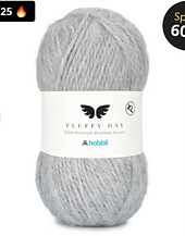 Fluffy Day XL is spun from premium acrylic. Acrylic yarns can vary greatly in quality, and the Fluffy Day line is made from an incredible quality, which makes it extra soft, comfortable, and easy to work with. It’s also an affordable alternative to the pricier mohair, and you can get away with knitting with just one strand.