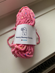 Honey Bunny Candy is a super bulky velour yarn made out of 85% polyester and 15% polyamide. The chenille’s silky and smooth texture has now gotten a sprinkle of rainbow neon flecks running around the main polyester thread.