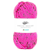 The tweed print is carefully matched to the base color of the yarn. It creates a nice and harmonious overall result. Tweed Dreams is stunning in a simple sweater - or a cabled poncho. If you use the yarn for accessories such as hats, neckties, scarves, etc., then you will achieve a bold, nubby retro look.