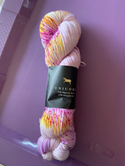 Each hank of Hobbii Unicorn is unique because the yarn is hand-dyed. It enables the most beautiful interplay of colors in the yarn, which consists of a mixture of exquisite merino wool and polyamide. This means Unicorn is durable enough for socks, but the wonderful shades make it an obvious choice for unique shawls, sweaters, or a funky vest. You can try pairing Unicorn with a thin strand of silk mohair and create a fluffy dream in the loveliest hues.