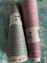 The concept of NIJI is to be knitted with other ITO qualities. With NIJI long, slightly irregular, variegated color courses are generated. NIJI’s colorful expression is best when knitted with solid colored yarns.