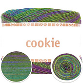 Cookie är ett lekfullt syntetgarn som passar perfekt till stickade och virkade plagg och accessoarer. En ”kaka” räcker både till en hel sjal eller poncho, och de härliga printfärgerna skapar en vacker effekt – utan att du behöver byta nystan en enda gång!