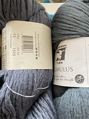 94% Israeli Mako Cotton, 6% Nylon (polyamide) with approx 248 yards per 100g that knits to 4.75 sts per inch on a US 8 needle and 11-14 sts per 4” single crochet on 5.5-6.5mm hooks.