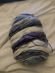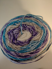 A standard 3-fold yarn which is spaced dyed, with an elongated colour repeating stripe means it can only be balled as a cake to appreciate all the colours in each different colourway.