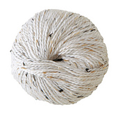 “This yarn begins with alpaca and Merino fibers dyed two different colors and then blended together to make a subtly rich, lustrous heather. We chose neutral colored donegal tweed neps to incorporate into the 2-ply yarn. The high ratio of neps gives City Tweed a traditional appeal. The use of Merino and alpaca makes it soft and warm. The DK weight is gorgeous in two-color knitting.”