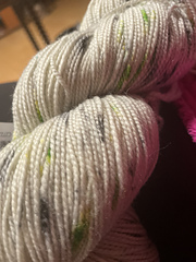 Take our ever-popular Hawthorne, the sturdy, vibrant superwash yarn you love, as a base, add some style and pizazz, and you get Hawthorne Speckle Hand Paint. Every Speckle skein is painted by hand with eccentric dapplings of color against the softest of backgrounds. Pair it with Hawthorne Multi or Kettle Dye for an eye-catching pop, or use it alone for a unique pair of socks or an everyday accessory that will bring a dazzle of color to any outfit.