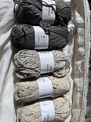 Our classic worsted weight wool combines with earthy-colored flecks of Donegal tweed, which are viscose neps (think slubs or bits of lint) that are suspended in a very fine acrylic mesh which allows them to be spun alongside the wool fibers. In the yarn, you won’t be able to see the acrylic web at all, and the neps will appear either on the surface of the yarn or spun inside the yarn strand.
