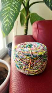 Super fine Merino, sourced in South Africa from mulesing-free farms, superwash treated, combined with stabilizing Nylon, make this yarn super soft, easy to care sock and all-purpose yarn. The varigated colors form nice stripes, the socks you see here are knitted from ONE skein, so you will achieve 2 different socks. One skein is sufficient for 3 (!) socks up to size 40.