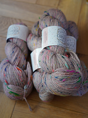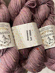 La Bien Aimée Corrie Confetti is a limited edition yarn made with recycled fiber and threads. The surprising pops of color are all snipped ends from our mill and atelier that would otherwise be discarded. We offer Corrie Confetti in small, exclusive batches. Every batch will be a single color, so grab it while you can, as there may not be more of that color produced for a good long while!