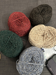 Les coloris sont obtenus sans nouvelle teinture, uniquement par mélange de nuances de bourrettes colorées, jusqu’à la teinte finale, avec une précision d’artiste ! On procède alors à une filature cardée classique en gardant l’aspect artisanal et des coloris chinés pour le plaisir. Ce fil est vaporisé et lavé.