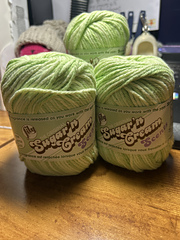 Worsted weight cotton with a soft, gentle fragrance.