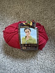 From LionBrand: “Cotton-Ease is a versatile, soft cotton blend worsted weight yarn. Combining the absorbency of cotton with the lightweight of acrylic, it is ideal for making year-round garments and accessories for the entire family.”