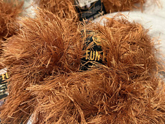 From LionBrand.com: “A novelty ‘eyelash’ yarn, Fun Fur is the go-to yarn for that luxurious fur-look. Use it for entire projects from fashion accessories to home accessories, or use it to trim your projects and combine it with other yarns. Fun Fur comes in solids, stripes, and NEW exotics, which feature two different lengths of fur for even more texture.”