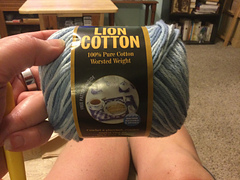 From LionBrand.com: “Our classic 100% cotton, 4-ply worsted-weight yarn with great absorbency. Ideal for dishcloths, washcloths, placemats, and all kitchen/dining/ bath projects, as well as accessories and garments.”