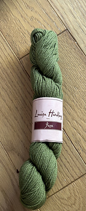 100% Cotton Denim with approx 97 yards per 50g that knits to 5 sts per inch on a US 7 needle.