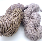 100 % Baby Merino. Twist is a 8 ply subtly thick/thin yarn. This yarn is versatile and can be used to get several different effects. Knit at a tighter gauge, the rustic thick-and-thin quality of the yarn is emphasized, while a looser gauge gives a more even look.