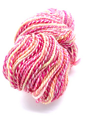 Marla is made from 2 strands of lighter-weight yarn that have been dyed separately and then plied together.