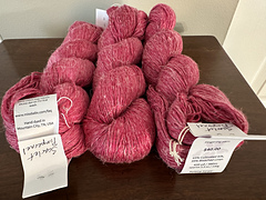 Our colorways will appear different on Damask than on our wool yarns - the dyes we use are only taken up by the silk, not the linen, giving the yarn a softly heathered appearance.
