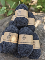 Uno, Duo and Trio yarns are made from Faroese wool blended with Shetland wool and Australian lambswool. It is a very high-quality yarn and has a lovely soft feel. It comes in natural shades and a large range of beautiful colours.