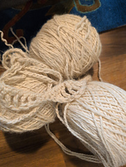 Llama with a sparkly thread spun with it. It is intended to be dyed.