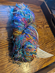 One of the most unique and beautiful yarns you’ll ever knit with! This premium yarn is a medley of textures and colors in a custom dyed combination of cotton, rayon, nylon, polyester and linen with a flash of metallic highlights. Each skein is created individually so no two skeins are ever totally alike.