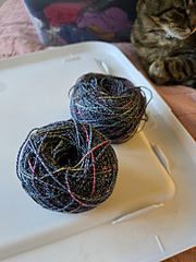 This is Regia’s multi-colored cotton-blend sock yarn and it was also available in 100 gram (435 yards) skeins.