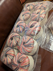Rowan Damask is a roving colored mixed yarn containing viscose, linen and little bit acrylic. The mix of fibers provides the yarn with a unique knitted finish.