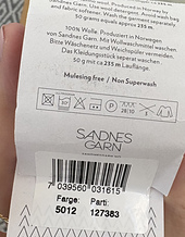 Strikkefasthet: 32 masker på 10 cm. Løpelengde pr. nøste (50 gr) = ca 235 meter.