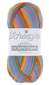 Scheepjes Downtown is a self-striping, Premium blend yarn made from Extra Fine Merino Wool and Nylon fibres. This blend of fibres creates a light and warm yarn that is also durable and easy to maintain. Downtown is further characterised by a soft touch, beautiful drape and excellent stitch definition, making it the ideal choice of yarn for making quirky, striped accessories, such as hats, socks and cowls. Downtown is available in 18 colourways.