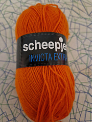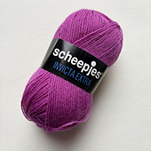 Scheepjes Invicta Extra is the solid coloured yarn, comparable with Scheepjes Invicta Colour. Invicta Extra is a superwash wool/acrylic blend, 50g/210m.