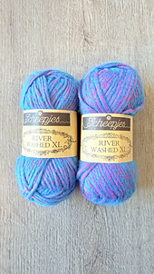 Scheepjes River Washed is unique: it has the same structure as Scheepjes Stone Washed, but its core is coloured and surrounded with a different coloured fluff to give it a two toned “halo”. River Washed is available in a regular Sport weight and XL Aran weigt version, both versions are available in 22 shades, which were named after famous rivers around the world.