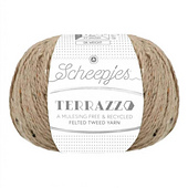 Thanks to the natural properties of wool, Scheepjes Terrazzo is lightweight and warm, with added softness and easy-care qualities afforded by blending wool with viscose. Composed of multi-tonal base shades that are enhanced by contrasting and complementing flecks of colour, the result is a felted, tweed effect yarn with gentle stitch definition and impressive texture.