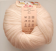50% wool, 50% acrylic. Sold in solid and variegated colors.