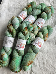 Merino Singles are a fingering weight single ply yarn from 100% Superwash Merino wool. The single ply construction gives it a wonderful sheen, takes colour fabulously and it has a soft, almost silky handle. Singles would be perfect for small accessories or larger projects like shawls or stoles. I wouldn’t recommend it for socks or items that take a lot of wear or abrasion.