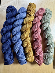 Each Party of Five mini-skein set contains five 62-yd / 57 m hand-dyed skeins in our popular Superwash DK yarn (100% Superwash Merino).