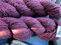 The traditional Irish homespun tweed of 100% pure new wool in a heavy worsted (Aran) weight. The wide color range consists of classic colors enhanced by tweed accents of coordinating colors. To felt your project, machine wash.