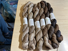 Cotton yarns require a different dye process and type of dye than wool or silk based yarns. I try the best I can to get colorways similar to our protein based yarns, but sometimes cannot get as close as I would like. I usually e-mail pictures of cotton colorways dyed for the 1st time, if unsure if the customer might think they are not “close enough”. Colors do not come out quite as saturated on cotton as some of our other