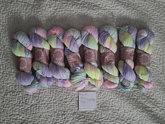 Our Merino DK are 100% extra fine superwash Merino, they are ethically sourced, mulesing free and hand dyed in small batches in our Brooklyn studio.