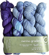 For those of us who love a color and want to stay within a gradient range of just that color. Merino Gradient was developed to do just that, keep your color as it migrates from light to dark across four skeins.