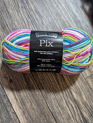 This colorful printed sock yarn knits up into beautiful machine-washable socks, hats, baby knits, and more!