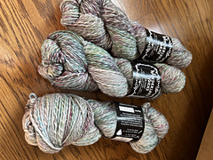 This lofty DK is slightly thick and thin, wrapped with a strand of silk. The silky absorbs dye differently for a pretty highlight throughout.