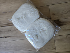 The manchelopi is made with a double knit in 100gr “plates” or “cheeses” and the thicknesses depend on the tension with which it is woven. Approximately double knit weave would be 230m / 100gr and a single knit 460m / 100gr.