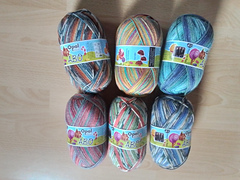 This yarn was only available in Germany. Some test yarns were unlabeled and called Opal Abo by purchasers. Later on the company came out with an Opal Abo labeled yarn. All stashes are combined here.